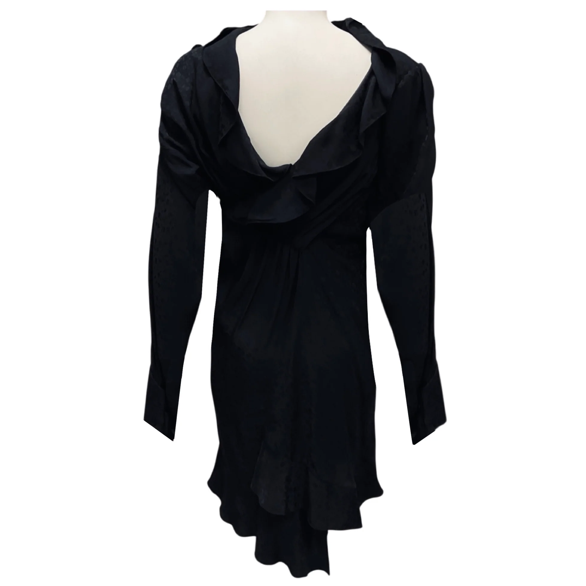 Balenciaga Black 2020 Ruffled Long Sleeved Asymmetric Satin Dress