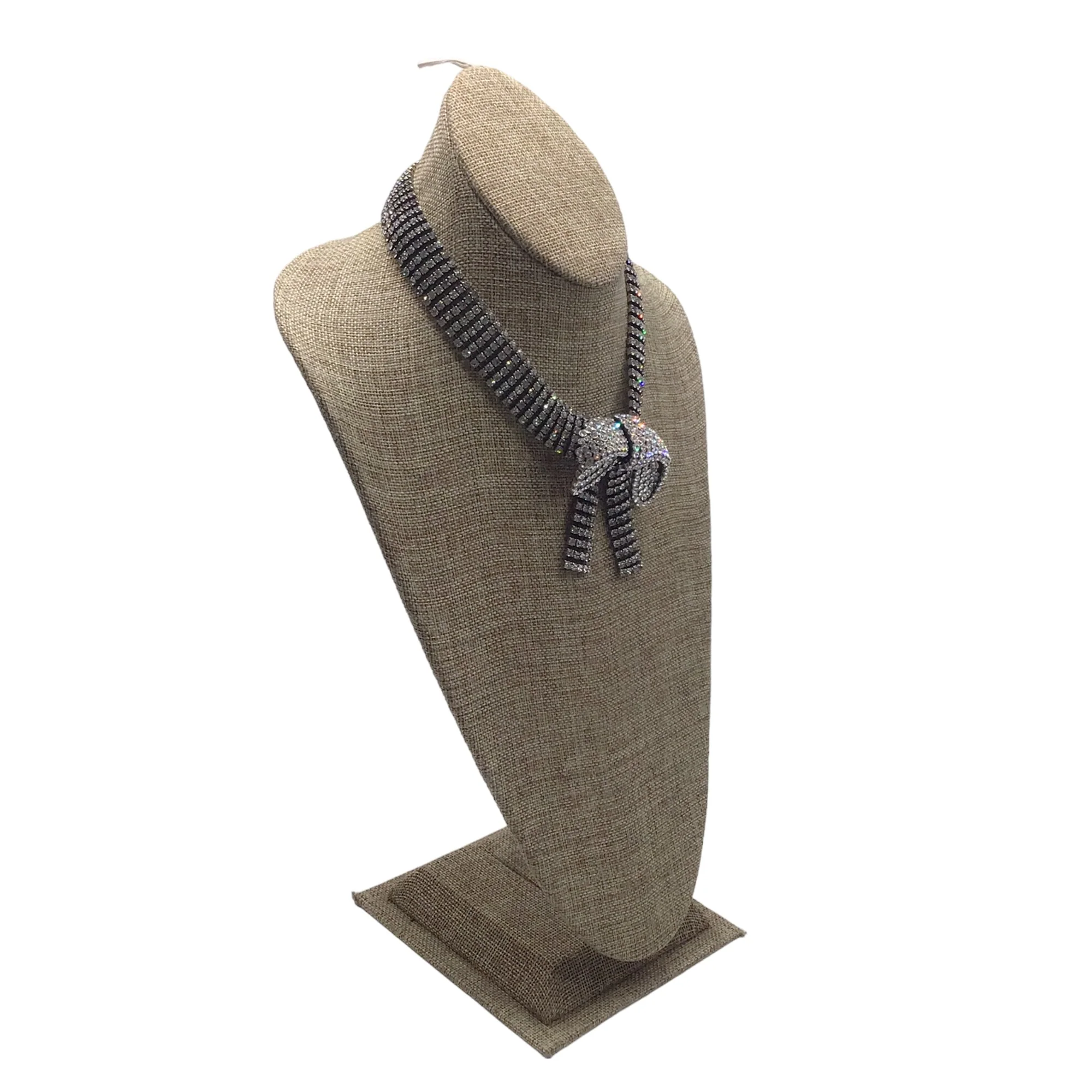 Description: Balenciaga Silver Crystal Embellished Bow Necklace.