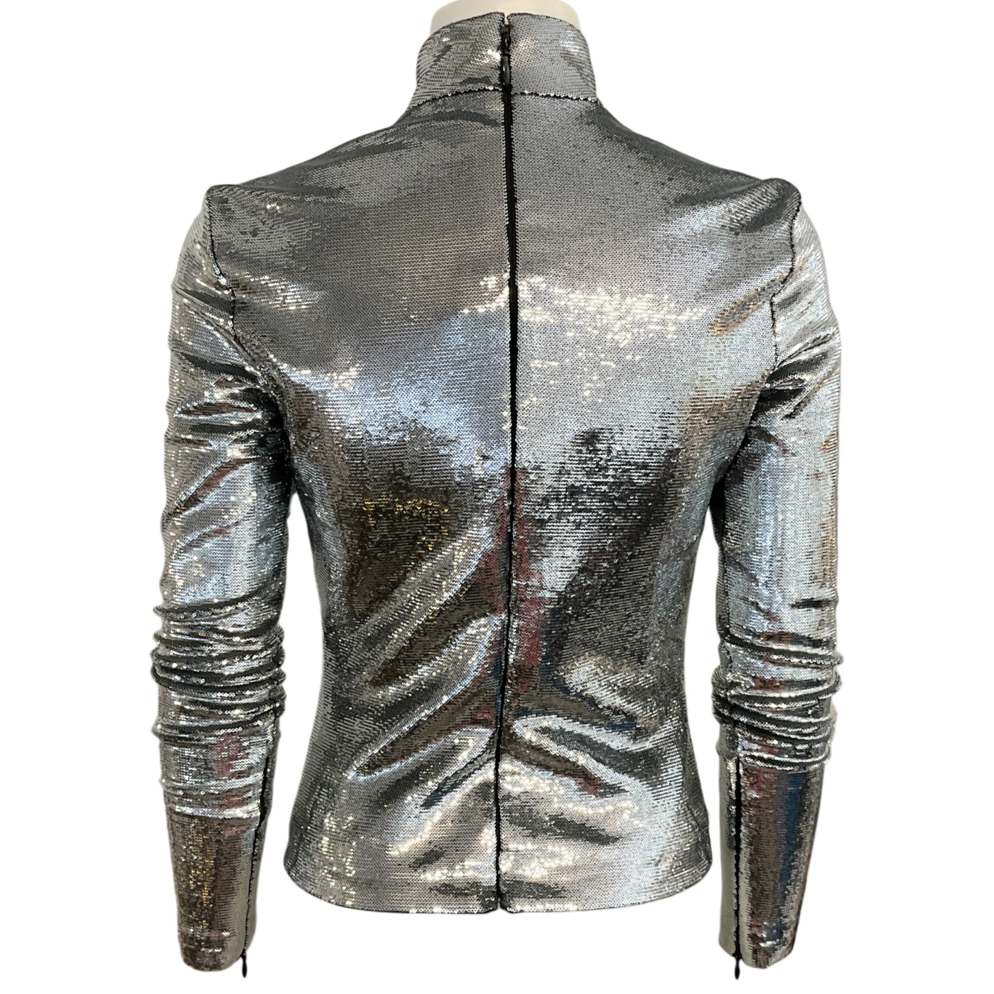 Balenciaga Silver Sequined Turtleneck Top