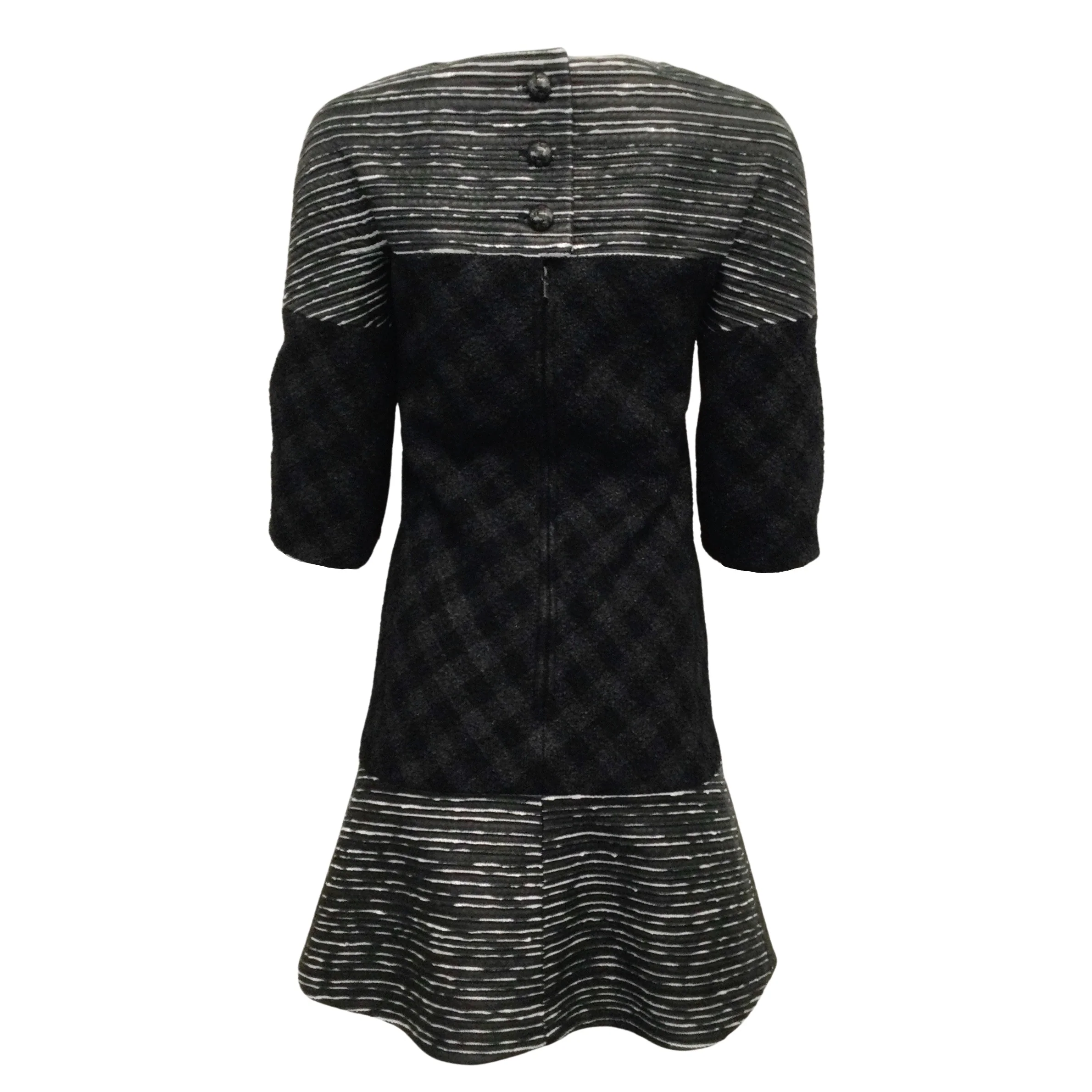 Chanel Black / Gray 2013 Tweed and Leather with 3/4 Sleeve Cocktail Dressā