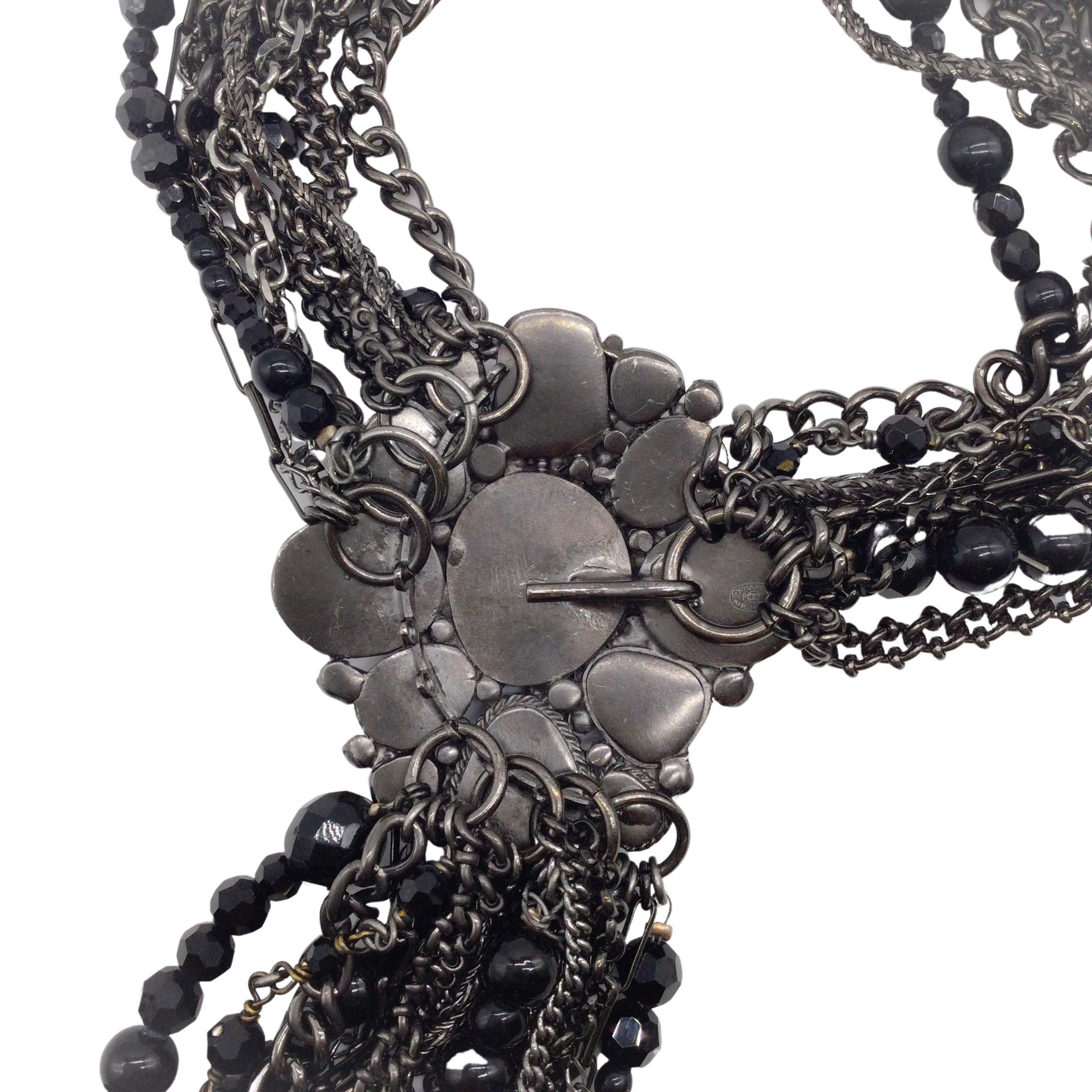 Chanel Black Multi Chain/Beaded Strand Necklace