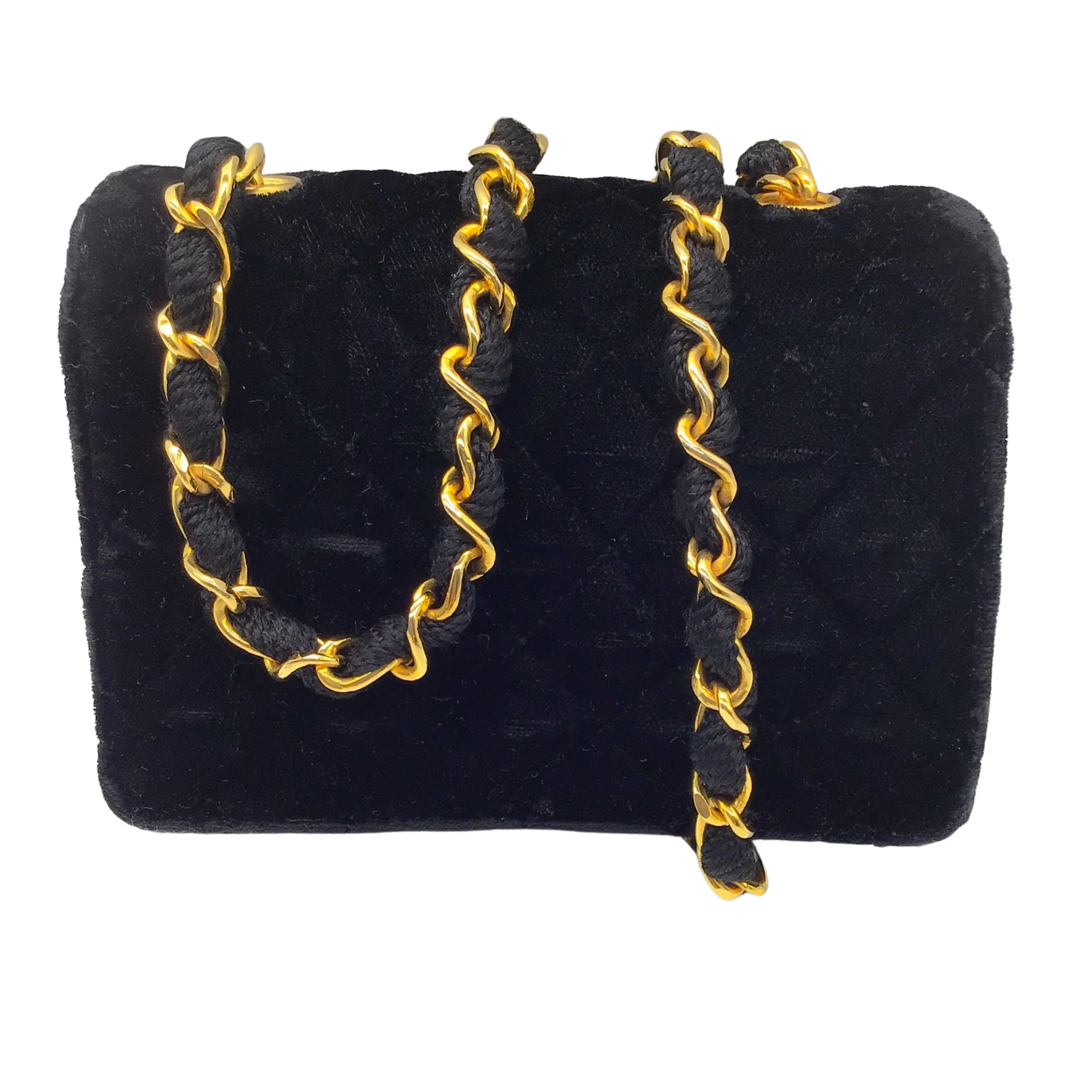 Chanel Black Vintage 80's Quilted Velvet Mini Flap Bag