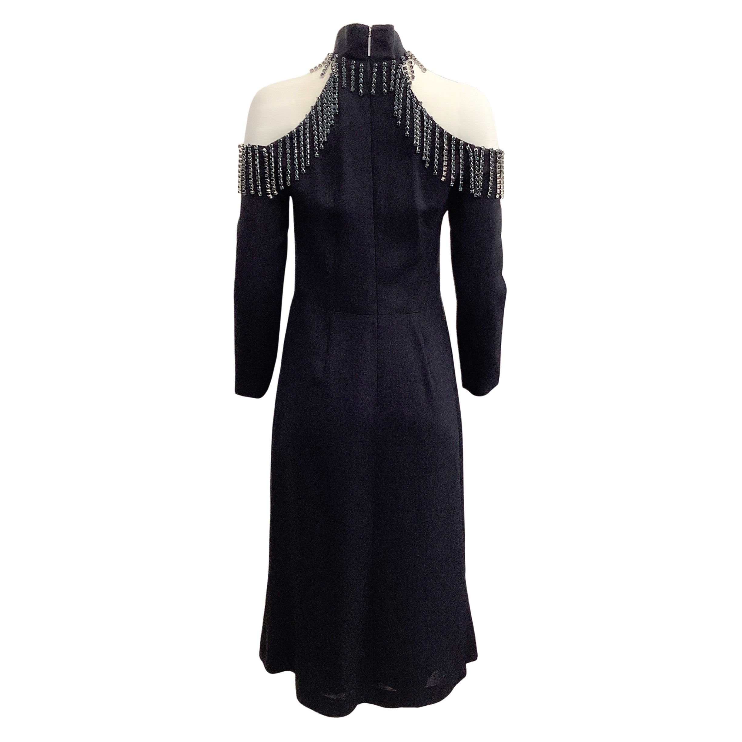 Christopher Kane Navy Blue Cold Shoulder Crystal Embellished Cocktail Dress—