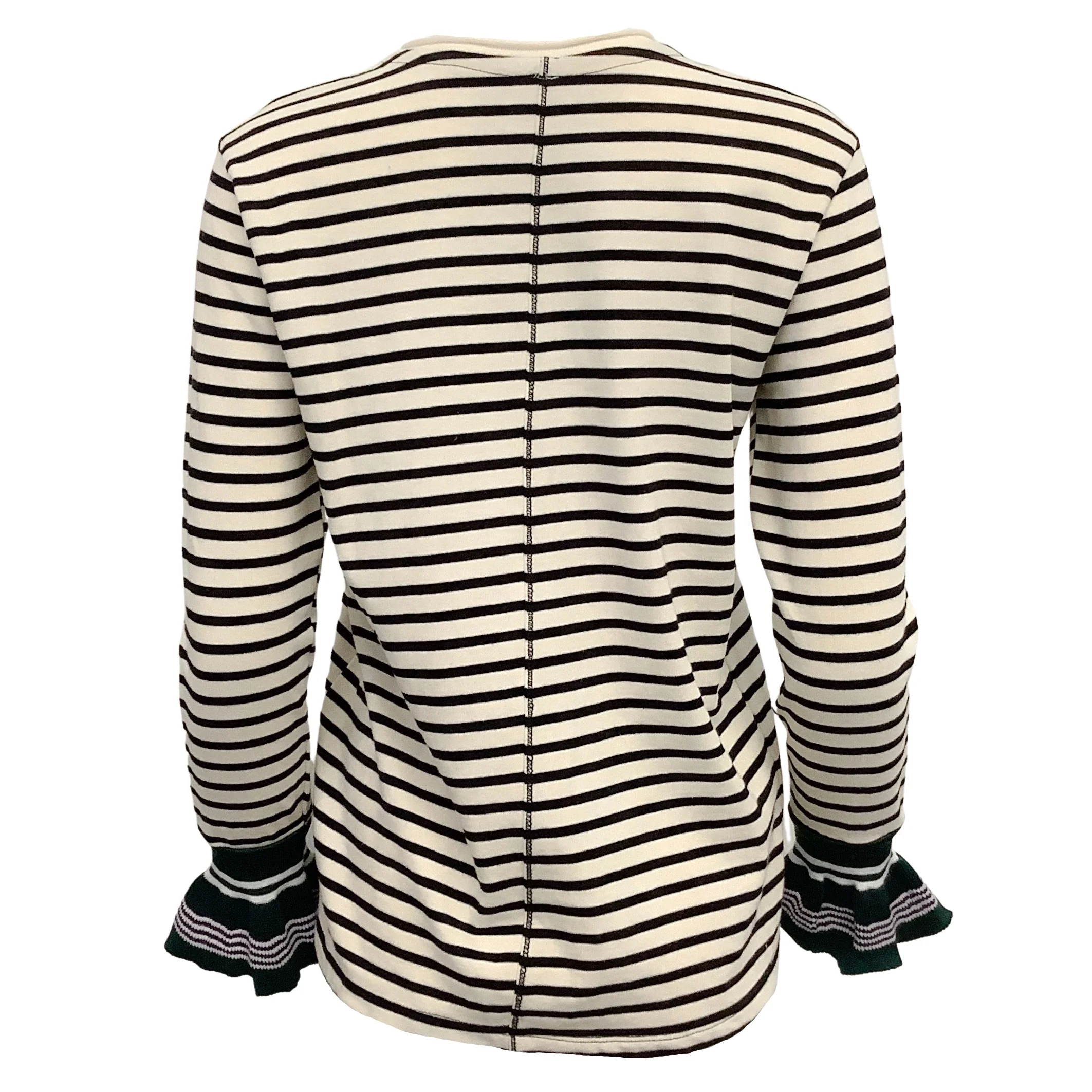 R13 Black / Ivory Striped Long Sleeve Tee with Bell Sleeves
