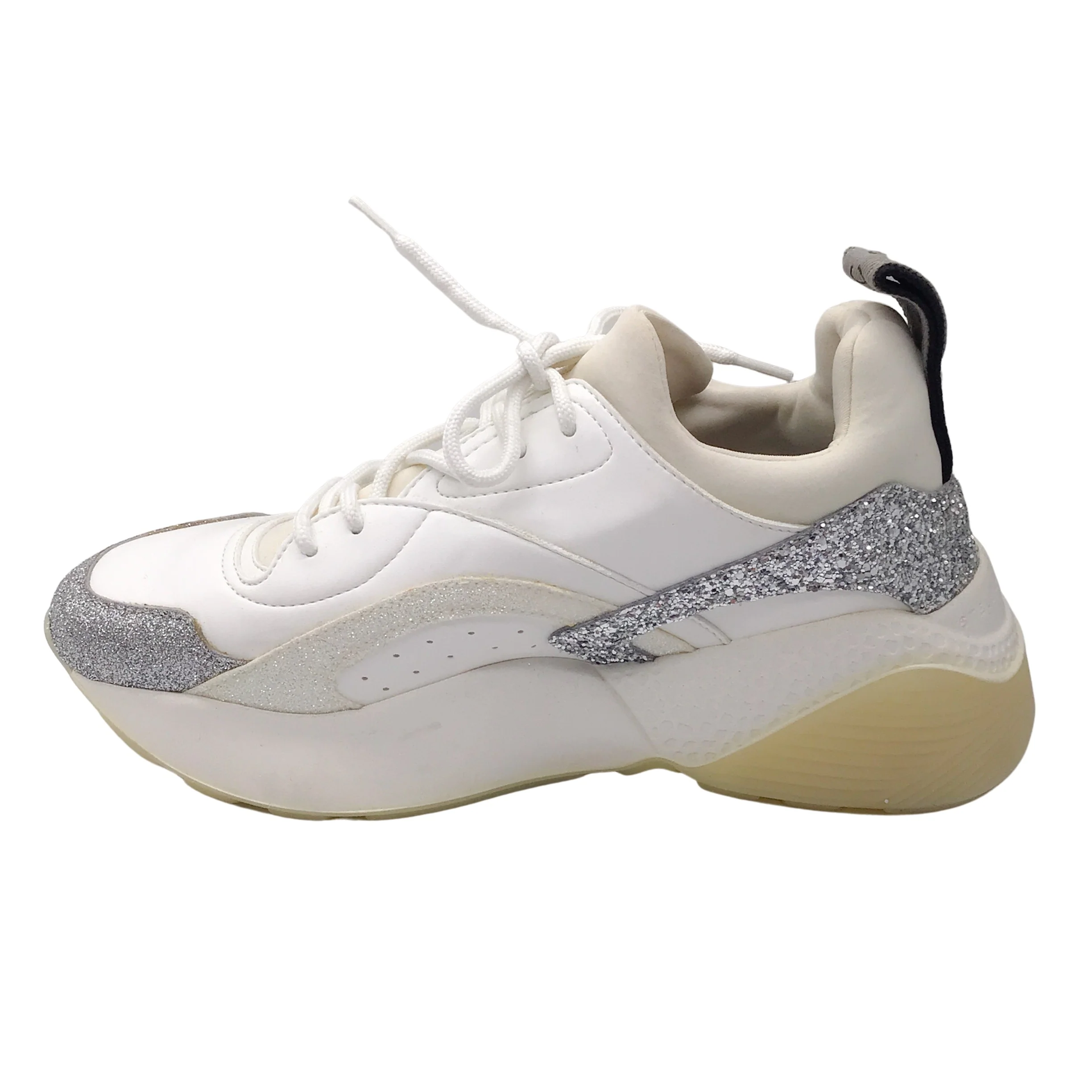 Stella McCartney Eclypse White / Silver Metallic Glitter Detail Chunky Sole Lace-up Leather Sneakers