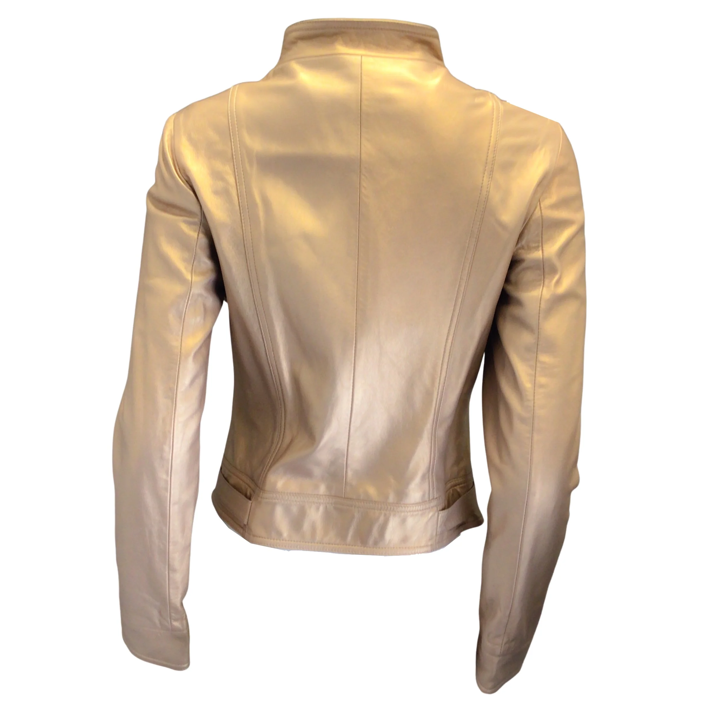 Description: Valentino Light Gold Metallic Vintage Lambskin Leather Jacket.